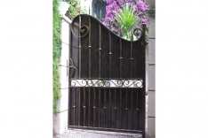 Classic provencale hand forged entrance gate. Round bars and decorative frise. This version without sheet metal backing and solid iron bars.