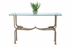 Forged iron bed side table to match the same style bed. Square hammered iron and double glass shelves.